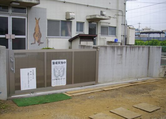 市内にある幼稚園の門扉の改修工事の様子です。下の写真は、改修工事後です。